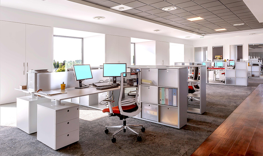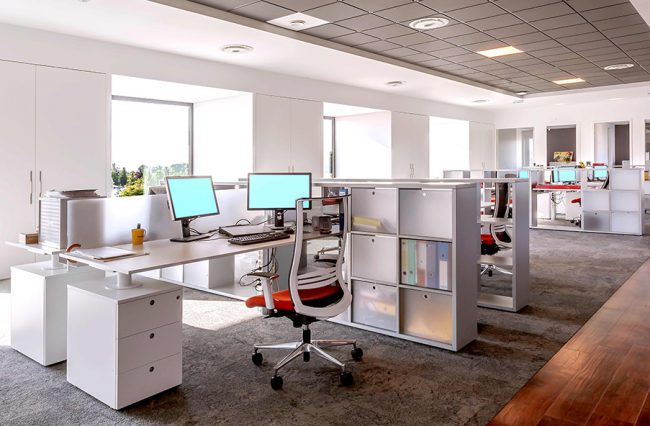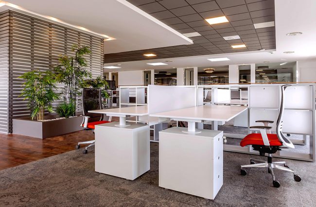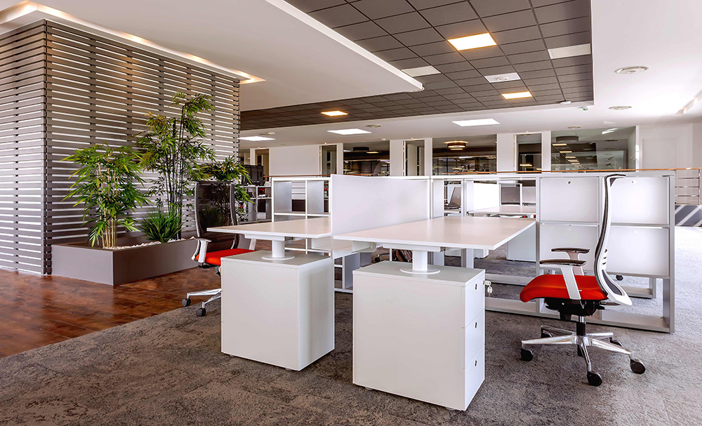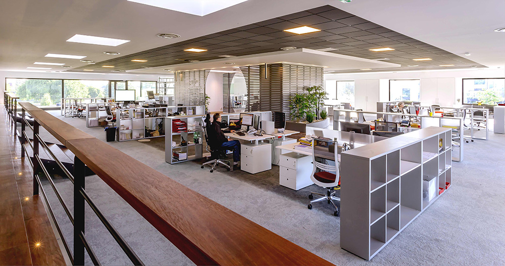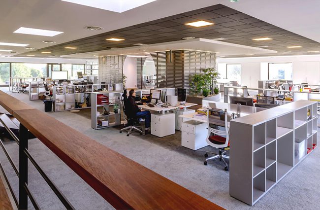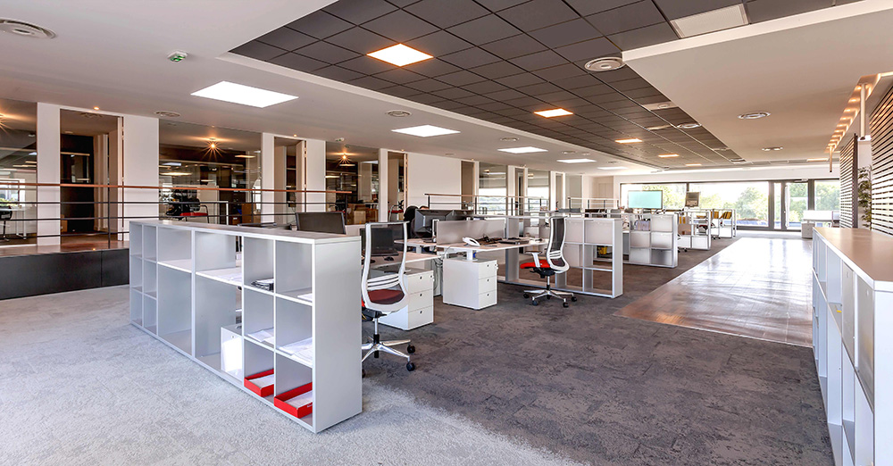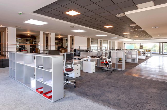 Descriptif : Conception, fabrication et installation du mobilier pour le nouveau plateau de travail : 32 bench de travail, avec cloisonettes de séparation et caisson porteur, meuble de rangement séparatifs, 8 bureaux de direction, tables de réunion, sièges, chaises visiteurs, armoires, chauffeuses et canapés