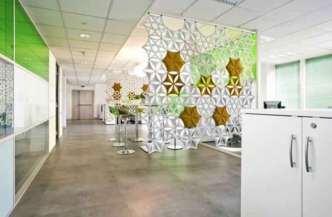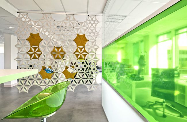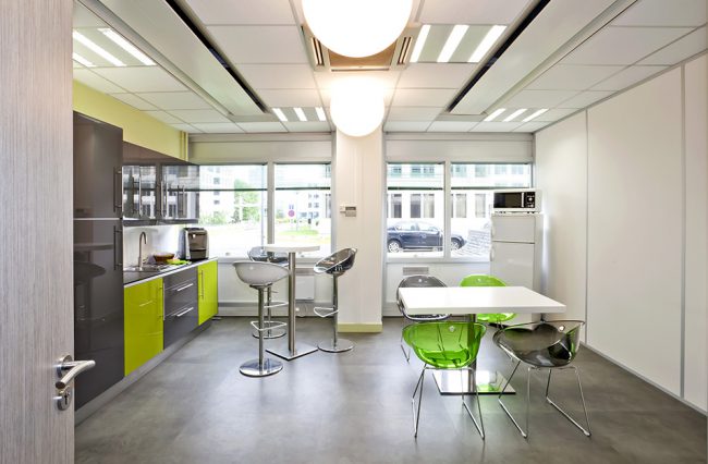 Descriptif : Aménagement d’un plateau comprenant 26 postes de travail, salles de réunion, salle de test, accueil, salon d’attente, cuisine/cafétéria, sanitaire.