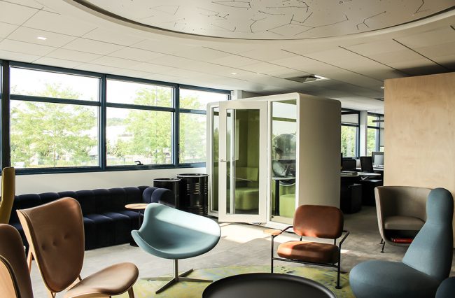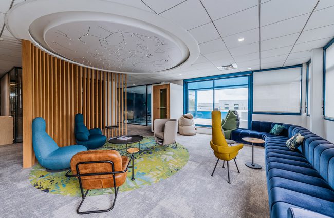 Descriptif : Aménagement Design & Build d’un espace de coworking incluant de nombreuses salles de réunion et espaces de repli, ainsi qu’un workcafé et une salle de sport.
