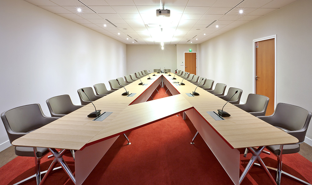 Descriptif : Aménagement du complexe Multi-Activité, comprenant une Salle du Conseil, les nombreuses salles de réunion, salles informatiques et les salles de conférence.