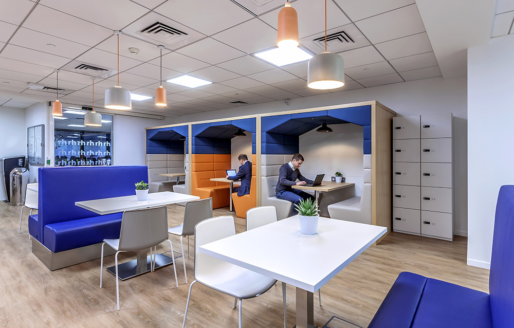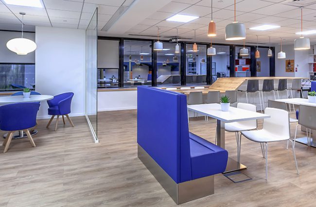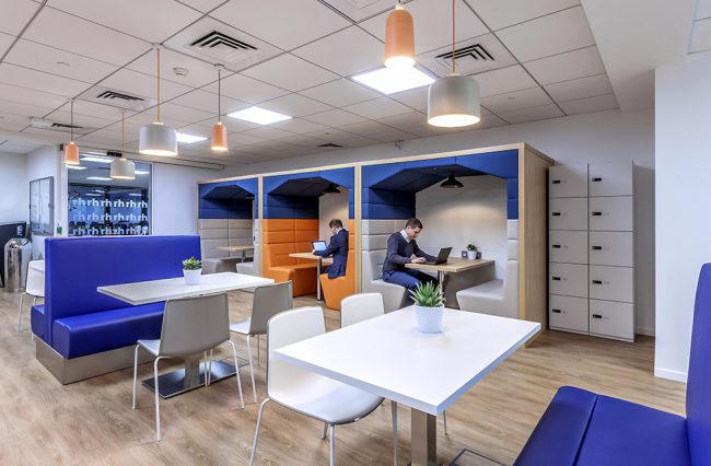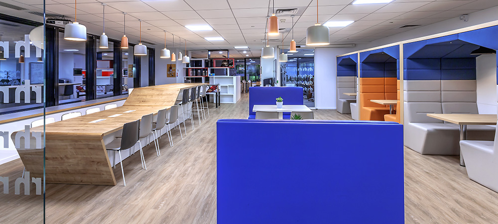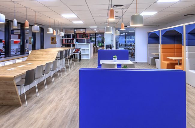 Points d’Intérêts : Coordination locale assurée et temps requis optimisé pour un client basé à l’international. Véritable poumon du plateau, la grande cafétéria a été conçue pour servir de réunion ou d’espace détente, procurant ainsi une ambiance chaleureuse et accueillante.