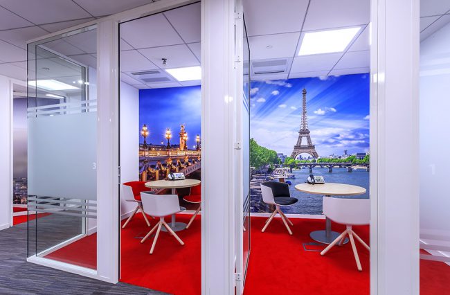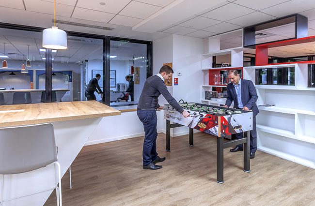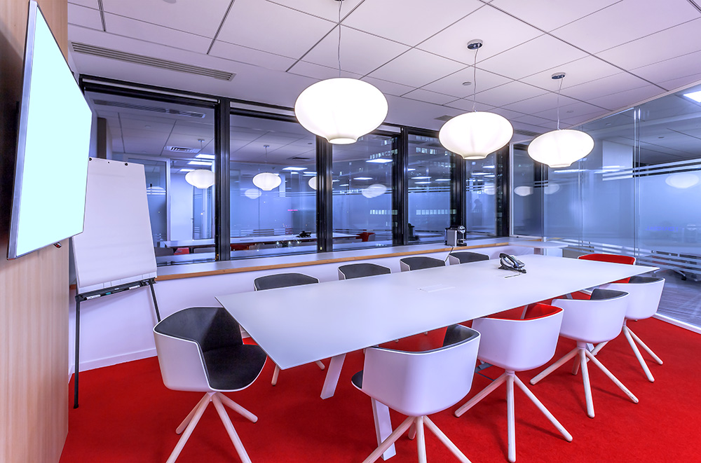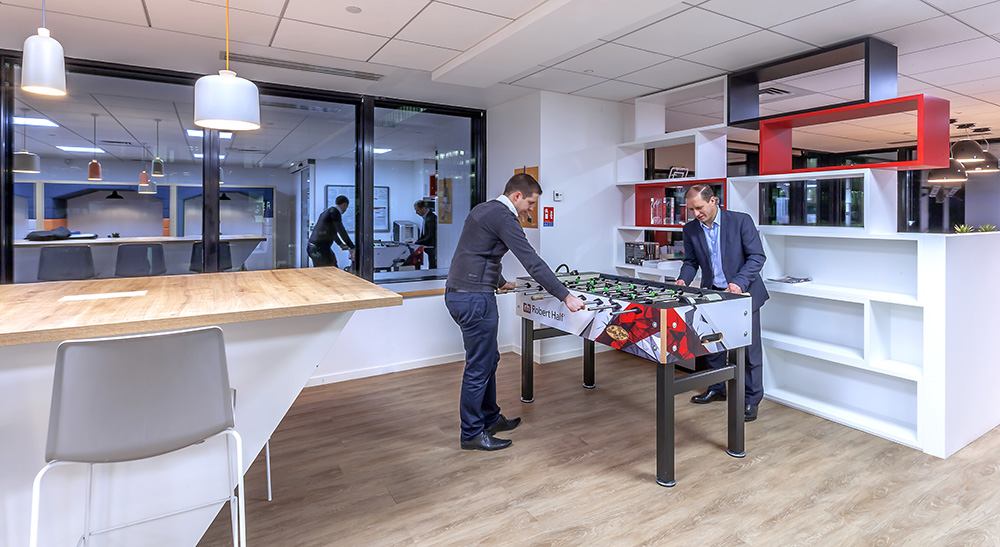 Descriptif : Pour ses agences en France, Robert Half a souhaité aménager ses bureaux usants de tons de bois riches mixés à du blanc et au rouge de la charte RHI, que ce soit dans les sols, portes, cloisons amovibles, suspensions ou mobilier, nos architectes d’intérieur ont conçu un aménagement de bureaux lumineux, chaleureux et polyvalent, permettant aux collaborateurs de choisir leur espace de travail en fonction de leur tâche.